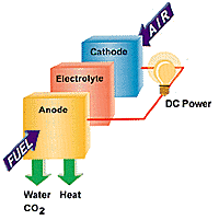 Fuel cells powered by natural gas are an extremely exciting and promising new technology for the clean and efficient generation of electricity. Fuel cells have the ability to generate electricity using electrochemical reactions as opposed to combustion of fossil fuels to generate electricity. Essentially, a fuel cell works by passing streams of fuel (usually hydrogen) and oxidants over electrodes that are separated by an electrolyte. This produces a chemical reaction that generates electricity without requiring the combustion of fuel, or the addition of heat as is common in the traditional generation of electricity. When pure hydrogen is used as fuel, and pure oxygen is used as the oxidant, the reaction that takes place within a fuel cell produces only water, heat, and electricity. In practice, fuel cells result in very low emission of harmful pollutants, and the generation of high-quality, reliable electricity. The use of natural gas-powered fuel cells has a number of benefits, including: